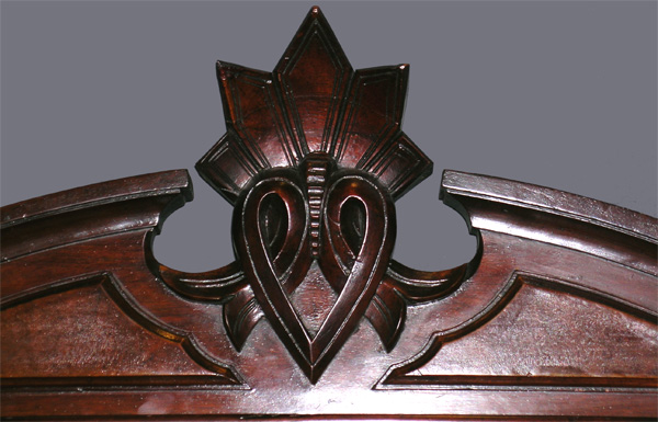 Circa 1865. Extra fine, American Renaissance Revival Secretary In Walnut and Burl. This Victorian bookcase/desk combination is exceptional for both its quality and very fine original condition. Tall and elegantly proportioned, unusual for all the quality details usually found on larger case pieces of this Period. Original finish solid American black walnut with applied burled walnut panels and carved solid walnut decorative elements. The desk features a fitted interior and two bird's eye maple drawers. The desk flap when it is opened does not slant down as is the usual case with these Period desks, it remains horizontal which makes the use of computer or lap top much easier than on the slanted surfaces. The desk flap retains its original green baize which is in somewhat tattered condition and can be easily replaced with felt or leather if desired. The base cabinet has four long drawers, one shallow that overhangs the other three larger drawers. All of the glass, hardware and locks are also original and in good working condition. There are two original walnut shelves that are adjustable. The secretary comes apart for easy moving into two large and one small (upper crown) pieces. Beautiful original patina which we have very lightly cleaned and waxed to retain the original finish. 34 1/2" wide x 90" tall x 18 1/2" deep. Price $3,400.