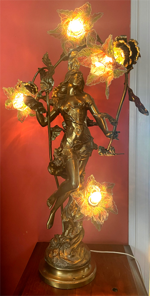 ART NOUVEAU FIGURAL NEWEL POST LAMP