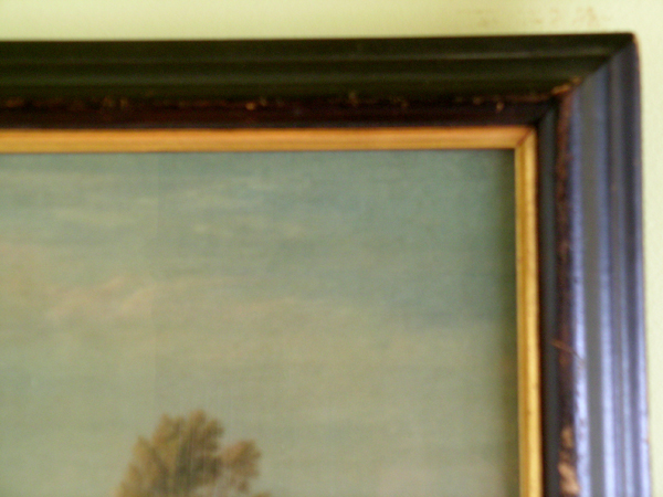 Fine 19th Century Chromo-lithograph of a Classical Pastoral Scene. All original, in a simple, dark brown ogee frame which retains it's original glass and backing. The frame has a gilded interior section all in fine condition. The print is in excellent condition and the outer frame has typical antique wear. 24 1/2" x 19" Price $175.